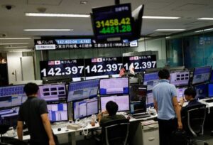 Employees of the foreign exchange trading company Gaitame.com work in front of monitors displaying the Japanese yen exchange rate against the U.S. dollar in Tokyo, Japan, August 5, 2024. REUTERS/Willy Kurniawan